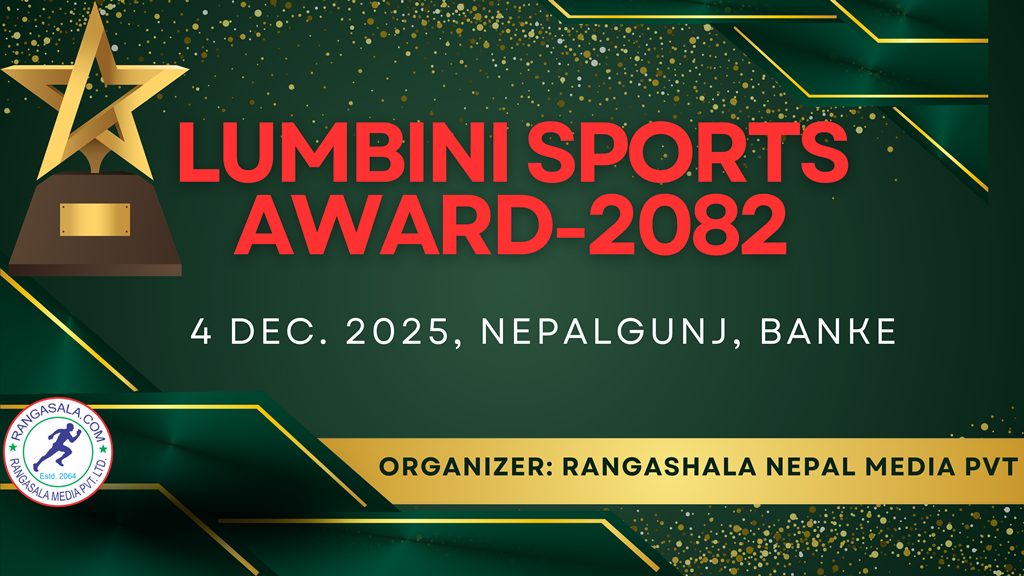 नेपालगन्ज : खेलाडी र खेलकर्मीको योगदानलाई सम्मान गर्ने उद्देश्य सहित नेपालगन्जमा पहिलो पटक लुम्बिनी स्पोर्टस् अवार्ड हुने भएको छ । रंगशाला नेपाल मिडिया प्रालीले आयोजना गर्न लागेको लुम्बिनी स्पोर्टस् अवार्ड आगामी मंसिर १८ गते हुनेछ । रंगशाला नेपाल मिडिया २०७३ साल जेठ १८ गते स्थापना भएको संस्था हो ।