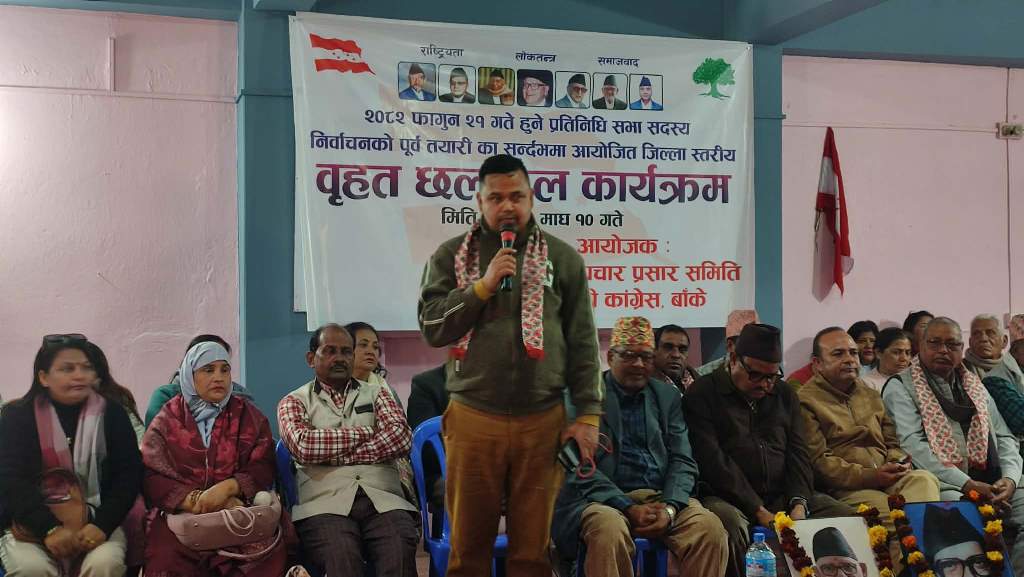 ‘म हाम्रो पार्टी सभापति आदरणीय गगन थापा ज्यु लगायत सबै मेरा सबै नेताहरुलाई धन्यवाद दिन चाहन्छु, सबैको आर्शिवाद लिएर म अगाडी बढ्नेछु, हामी भनेको रुख नै हो, चार तारे नै हो,’ उनले थपे, ‘म हजुरहरुमाझ आर्शिवाद लिए आएको छु, वडा तहदेखीका सबै नेताहरुले आशिर्वाद दिनुहुनेछ, पुर्वप्रधानमन्त्री एवम् पुर्वसभापति स्वर्गिय सुशिल कोइरालाको क्षेत्र पनि हो, यो क्षेत्रमा हामीले झण्डा गाड्ने कुरा भईसकेको छ ।’ हेभिवेट उम्मेदवारको प्रसंग कोट्याउँदै कोइरालाले कांग्रेसले बाँके-२ सहित देशभरका ७७ वटै जिल्लामा आफ्ना हेभिवेट उम्मेदवार उठाएको दाबी गरे ।